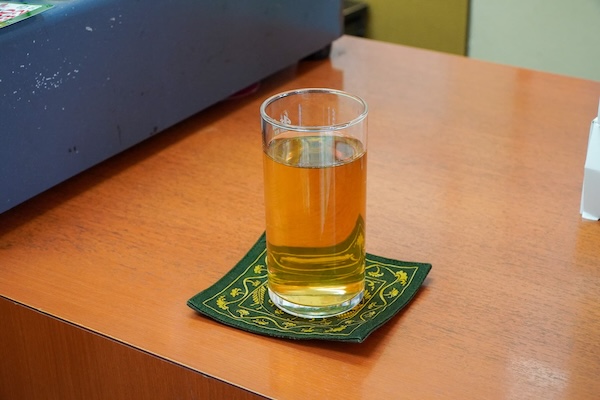差し出されたのは、冷たい鳩麦茶。「キンキンじゃないけどね」なんて笑いながら、もう一杯は温かいのを淹れてくれる。