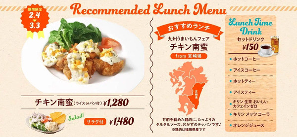 ドリンクやランチメニューも九州メニュー