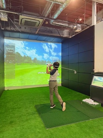 レッスンはすべて、天候に左右されない室内のシミュレーションブースで実施。ゲーム感覚で楽しめる。また、安全面にも配慮し、年齢や体力に合わせて無理のない内容で進めるため、ゴルフ未経験の子どもでも安心して始めることができる。