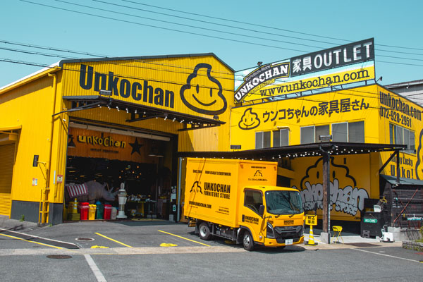 大阪府八尾市の木楽家本舗が運営する「ウンコちゃんの家具屋さん」は、大阪の家具業界で使われていた「B級品=ウンコちゃん」という隠語に由来。創業当初はその名の通り“傷もん・B級品”の家具を手頃なディスカウント価格で販売し、“傷もん”とは思えない上質な家具をリーズナブルに購入できることで、多くの人に選ばれてきた。