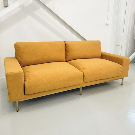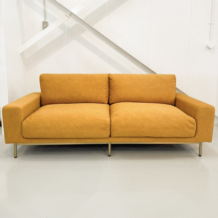 あぐらもかけるほど広々とした奥行きのある座面に、ボリューム感のある肘掛けを組み合わせた開放的なデザイン。本体を支えるすっきりとしたスチール脚とのコントラストが、軽やかで洗練された印象に。サイズは、幅1980mm×奥行き880mm×高さ740mm(座面高390mm)。思わず全身を預けたくなる沈み込みと、包み込まれるような感触を楽しむことができるソファだ。