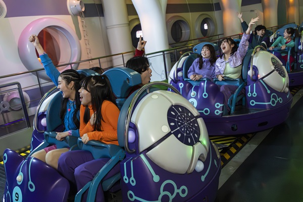 2つ目は、音楽の世界観に合わせてライドコース内のライティングをリニューアル。色鮮やかな光、ミラーボールのようなきらめきなどを新演出した『スペース・ファンタジー・ザ・ライド』のコースで、EDMのビートとライドのスピードが融合し、光と音に包まれた宇宙空間に飲み込まれるような体験を味わえる。