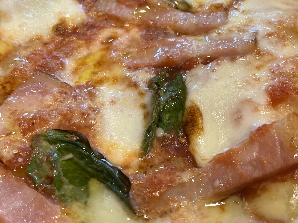 フレッシュバジル、トマトソース、モッツアレラ、ベーコン