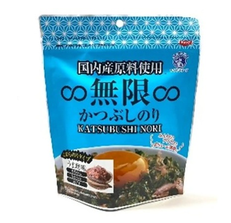 かつぶし味の「∞無限∞かつぶしのり」は、「天草の塩」、なたね油、 白ごまを使用。ふんわりとした柔らかさが特徴で、日々の料理にさっとかけるだけでアクセントになる。