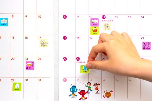 スケジュールシール付きで、油性ペンで直接記入もできる「おふろdeカレンダー」などもある。