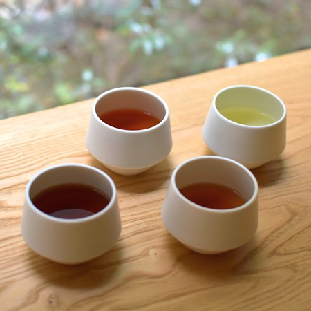 メニューには、4種類の健康茶とのペアリングも含まれる。食前には国産有機桑の葉茶、食中には有機レモングラスルイボスティーと有機タンポポ茶、食後には国産烏龍茶を提供。なお、食後のお茶は日によって変わるとのこと。