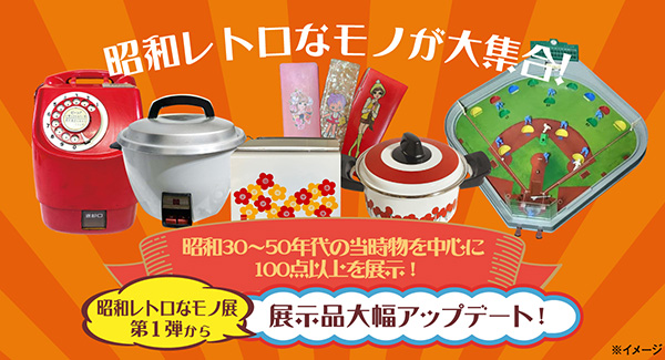 「昭和レトロなモノ展」第2弾では、昨年より展示品を大幅にアップデートし、昭和30~50年代当時の物を中心に、昭和の貴重な品物を100点以上展示。
