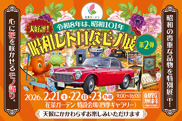 令和8年は昭和101年。神奈川県立花と緑のふれあいセンター「花菜ガーデン」では、2月21日(土)~23日(月・祝)に、昨年好評だった「昭和レトロなモノ展」第2弾を開催する。