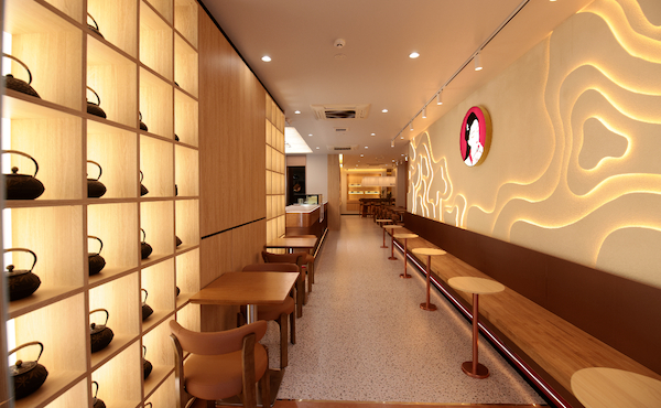InstagramやXなどで拡散されているBEUTEA矢場店。本来の中国茶の抽出法で淹れるBEUTEAの象徴として、店内には鉄瓶が並ぶ。