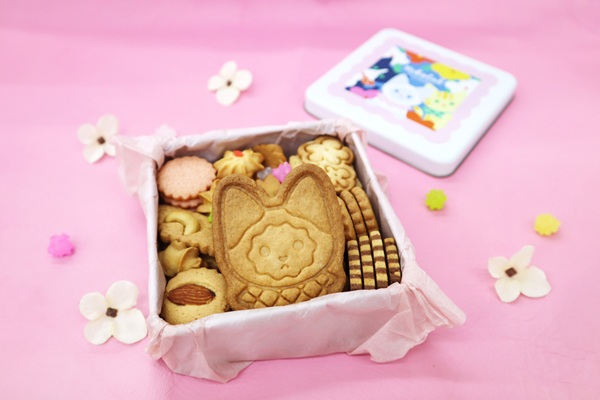 缶の中には、その型で焼き上げた、このコラボのためだけの特別な猫クッキーが入っている。