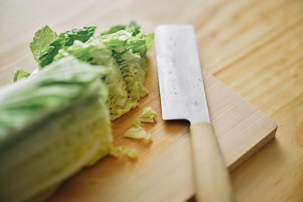 そして、越前打刃物。越前打刃物は、1300年代からその歴史が始まり、鎌や菜切包丁など、暮らしを支える刃物づくりを発展させてきた。今回は、問屋でありながら包丁の仕上げも担う山田英夫商店と、福井県出身のデザイナー上島弘祥(TIDS)がタッグを組み、2種類の包丁を現代の台所に合わせて再設計。kayoi | 通「菜切」、