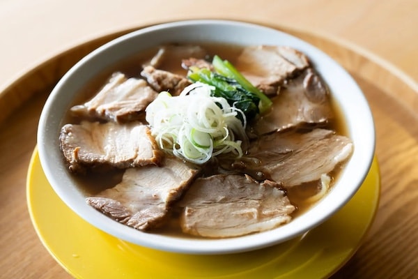 また、朝の市場に寄り添う、定番メニュー「朝市ラーメン」も提供する。生姜の香りとニンニクの旨みが効いた味わいで、ニンニク抜きにも対応可能。トロトロに煮込んだチャーシューも、この一杯の特徴のひとつだ。