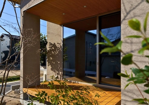 植栽とフェンスによって外部からの視線をやわらかく遮り、カーテンを閉めきらなくても安心して暮らせる住環境が実現された。