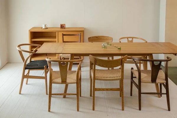 約100アイテムの圧倒的ボリュームで展開し、人気のペーパーコードチェアからアッシュ無垢材のテーブルまで、多様なラインナップが一挙に公開される。
