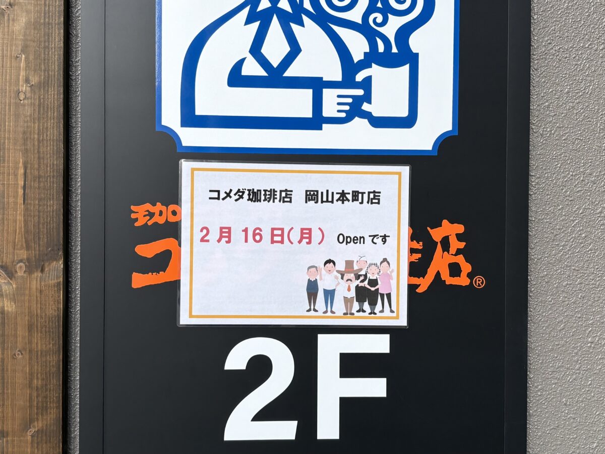 岡山駅から近いところに作っている「コメダ珈琲店 岡山本町店」のオープン日が出ていました。