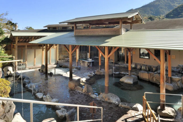 また、屋外テラスの足湯は屋根を撤去し、二子山をはじめとする箱根の山々を望む、より自然を身近に感じられる設えに刷新。