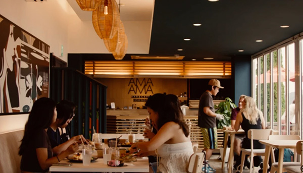 ハンバーグプレートやブリボウル(炙り)、ガパオライスなどの新メニューが観光客にも好評だというレストランカフェAMAAMAは、「まるで海外」といった声が寄せられ欧米系外国人からも人気だ。
