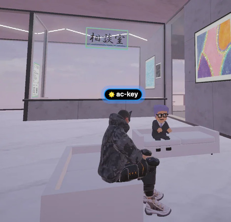 メタバース事業所で、GFTEARA(ギフテラ)開発者のアッキー氏と話し合いをしている様子