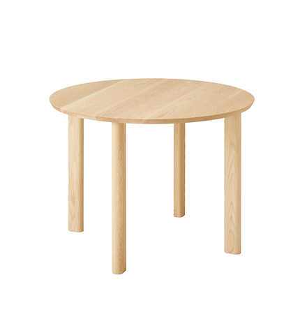 「Round Table」は、角のない円形の天板にタフな無垢材を使用しており、和やかな空間を演出する。
