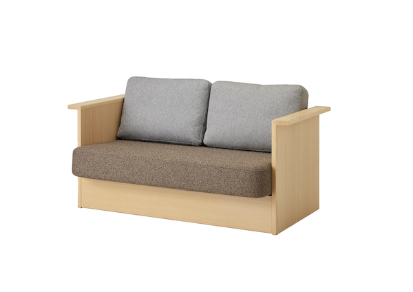 「Kigakiku Sofa」はコンパクトながら、アーム部分にグラスなどを置ける機能や、面下にブランケットなどを収納できるスペースを備えている。