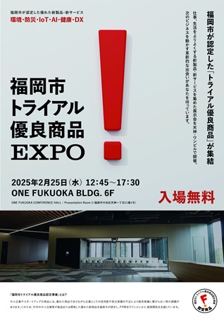 福岡市は、市内の新規性・独自性のある優れた新商品を紹介する展示会「福岡市トライアル優良商品EXPO」を2月25日(水)に開催。