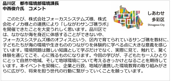 品川区都市環境部環境課長の中西俊介氏のコメント