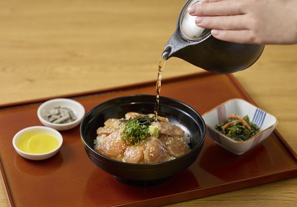 また、日本茶アンバサダー協会監修の「はしっこ茶」を使用した特製のお茶出汁「茶がゆの茶(温)」も登場。食べる直前にかけることで、香ばしい香りとともにお茶漬けとして楽しめる。