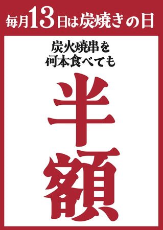 炭火串焼全品半額デーや、毎日曜日別激安イベント開催