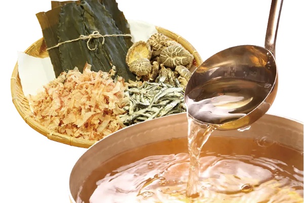 毎朝、カツオ、いりこ、椎茸、昆布からじっくりと丁寧に取る自家製の黄金だしは、素材本来の味を最大限に引き出し、料理の風味を格上げする。手間ひまかけた同店自慢の出汁だ。