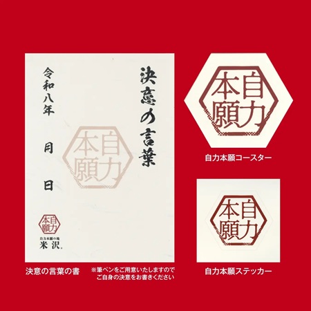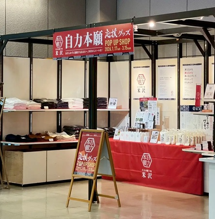 また、1月17日(土)〜3月15日(日)の期間、上杉城史苑 館内の特設コーナーで、挑戦する気持ちに寄り添う「自力本願 応援グッズ POP UP SHOP」を同時開催している。