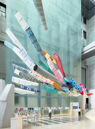 日本橋の伝統と革新、そしてNUNOの創造の輪が交差する『続・日本橋こいのぼりなう!』を見に、日本橋三井タワーに足を運んでみては。