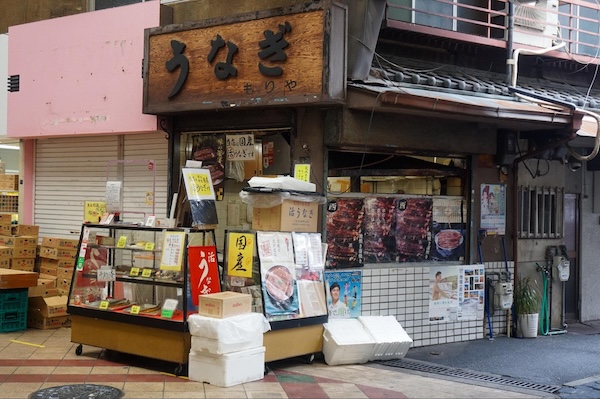 焼き台から立ちのぼる煙に、ふっと木の香りが混じる。布施・本町通りの商店街の一角に、うなぎの持ち帰り専門店「もりや」はあります。