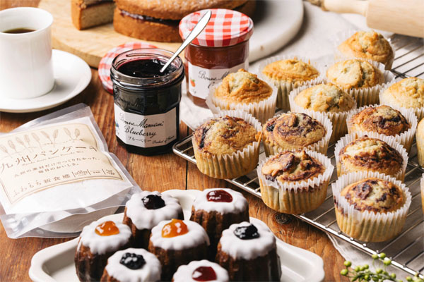「九州パンケーキ」は、“九州の素材だけでつくる”ことにこだわったパンケーキミックスブランド小麦・雑穀・砂糖まで全て九州産を使用し、素材の風味をそのまま楽しめる自然な味わいが特長で、産地と消費者を繋ぐことを目指している。また、九州各地に展開する九州パンケーキカフェでは、このミックス粉を使ったオリジナルメニューを提供し、“九州のやさしいおいしさ”をそのまま体験できる場づくりを行い、現在は「九州パンケーキカフェ」宮崎本店、⼈吉HASSENBA店、武雄市こども図書館店の3店舗を展開している。