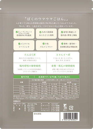 「THE HUMAN GRADE ぼくのウマウマごはん。」は、ヒューマングレード基準の原材料を使用。人の食品と同等レベルで管理された原材料を厳選している。九州の銘柄鶏「ありたどり」を中心に、産地や品質基準が明確な素材を選び、「自分が口にするものと同じ基準で選ぶ」という視点で原材料を見直した。