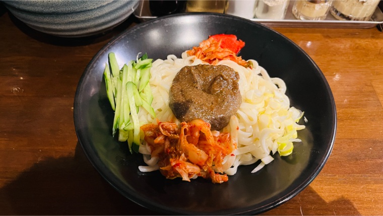 個人的にかなりヒットだったのがキムチじゃじゃ麺。じゃじゃ麺にキムチはありそうでなかった組み合わせですが、これが合います。キムチの酸味と辛味が全体にほんのり広がり、いつものじゃじゃ麺とは違う美味しさ。王道のじゃじゃ麺にあまりピンとこなかった人にも、ぜひ試してほしい味だと思いました。
