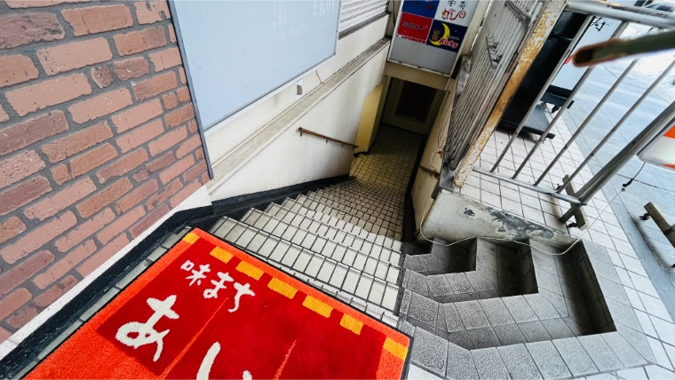 不来方じゃじゃ麺は盛岡市大通の地下街にあります。階段を降りると少し薄暗い地下通路が広がり、正直なところ「ここに本当にお店があるの?」と不安になるような雰囲気。地下街の中はシャッターが閉まったお店も多いですが、不来方じゃじゃ麺は営業中の看板がちゃんと出ています。知っていないと辿り着けない感じが、逆に印象に残ります。