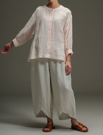 リネンボイルパレットチュニック(さんごいろ)、リネンパレットコクーンパンツ(はいあか)