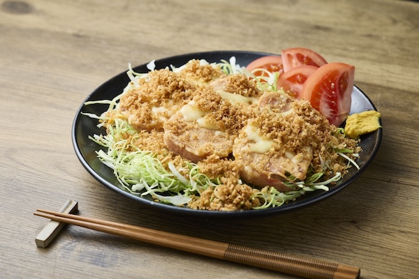 揚げないチーズポークカツは、ポークのピカタに炒めたパン粉をかけた簡単につくれるフライ風の一品だ。
