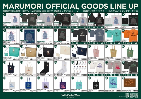 “猫神祭”の物販会場では、「猫碑コレクション」のほかに、丸森町公式キャラクターねこがみとうぐいすPの商品や丸森町在住のイラストデザインユニット(集団)による“Marumori Cat Town”シリーズなど、全40種が発売される。