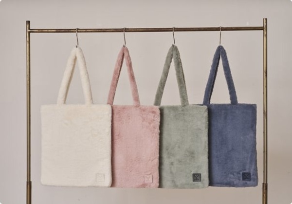 ファー素材がヒツジホワイト、ベビーピンク、ミントグレー、アッシュネイビー。
