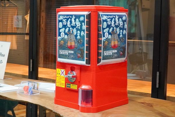たとえば赤い自販機。実はこれ、妖怪に変身した店舗オーナーの姿。ガチャを回すと、小さなフィギュアや商品券が出てくる。遊び心と商売が、無理なく結びついていて、なんだかいい。