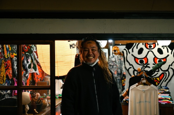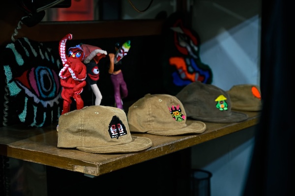 布施駅から本町通商店街をふらり。にぎわいを抜けて少し脇道にそれると、静かに光るショーウィンドウがある。中をのぞくと、なにやら色とりどりの“顔”がずらり。キャップにロンT、そして壁いっぱいのマットたち。全部、妖怪。