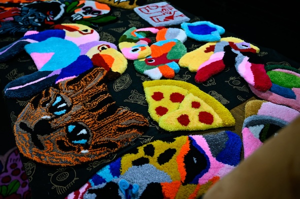 壁いっぱいのマットたちは、とにかくにぎやか。でも、押しつけがましさがない。目が三つあったり、舌を出していたり。でもそれが、なんだか人間くさくて、親しみがわいてくる。