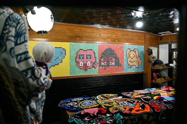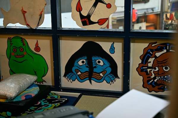 古い伝承に、いまの色を塗る——。そんな感覚が、この店のアートスタイルをかたちづくっている。目の覚めるようなビビッドカラーで描かれた妖怪たちは、一見ポップ。でもその奥では、静かに、そしてしぶとく、物語が息をしている。
