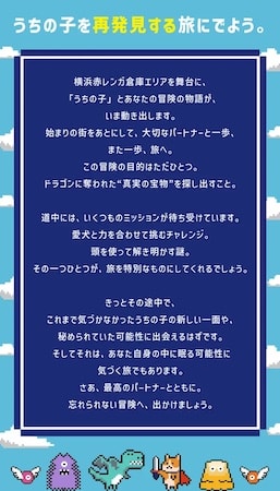 冒険のテーマは「うちの子を知る旅」。「冒険の書」を携え、愛犬とドラゴンに奪われた“真実の宝”を取り戻す冒険のストーリーが展開される。