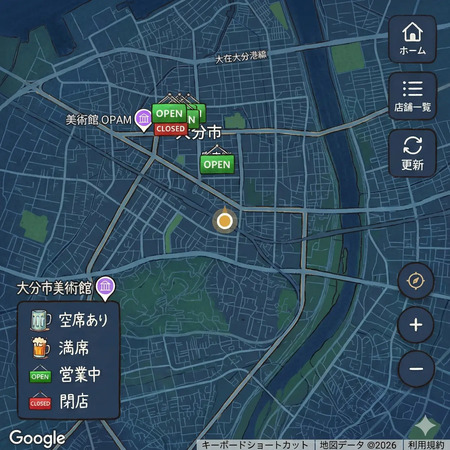 現在(2月20日時点)は、大分市府内町・都町エリアを中心に情報が掲載されている。