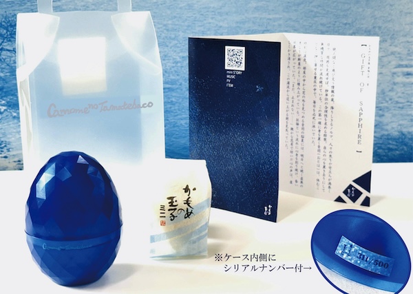 「OF HOTEL」限定のスペシャルパッケージは、「サファイア」1,500円(税込)、「パール」2,000円(税込)の2種。本体に、特別ミニバッグ、シリアルナンバー、ブックレットミニポスター(飾って読めるポスター)、かもめの玉子ミニ1個がセットされた物語の世界をより深く愉しむための、特典を添えたギフトセットで500セット限定での販売となる。