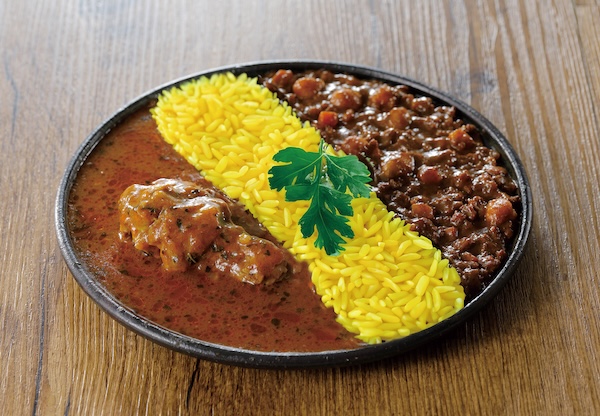 4番目は、鶏だし香る水たきスープカレー、鶏キーマをそれぞれ味わった後、2種類のカレーを混ぜ合わせて味変、あいがけカレーとして3度味わえること。