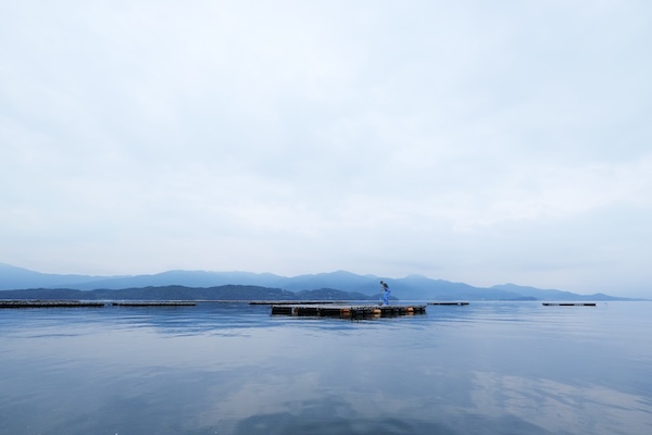 牡蠣の筏に施肥