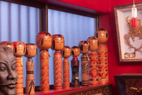 恐る恐る扉を開けると、まず視界に入るのは、並ぶこけしたち。そして、鎮座するオオカミやら、鹿の剥製。